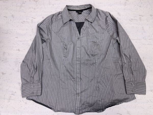 - LANE BRYANT レーンブライアント オールド レトロ 古着 ストライプ スキッパー 長袖シャツ ブラウス レディース 大きいサイズ 24 グレー