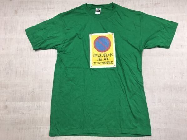 - 違法駐車追放 標識 おもしろ 半袖Tシャツ カットソー メンズ 大きいサイズ XL 緑