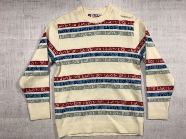 > リバティーベル LIBERTY BELL レトロ スキー オールド 連続ロゴ ジャガード ライン ボーダー スポーツ ニットセーター レディース 白