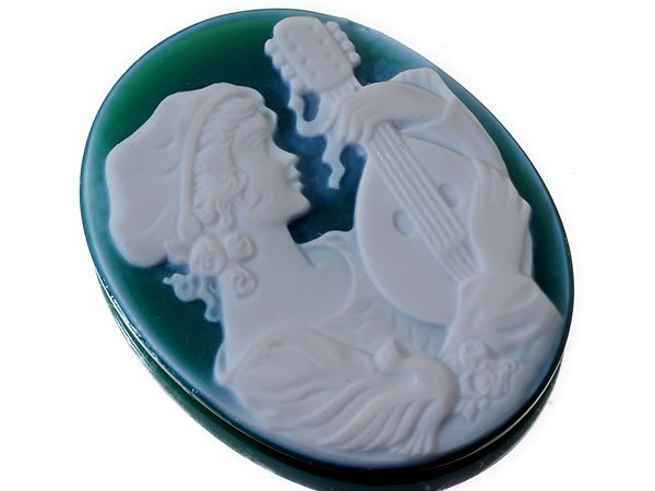- 【ジュエリー極】ハンスペーターミュラー作 女性吟遊詩人の彫刻 高級グリーンストーンカメオルース 45.0mm×35.1mm k910i【送料無料】