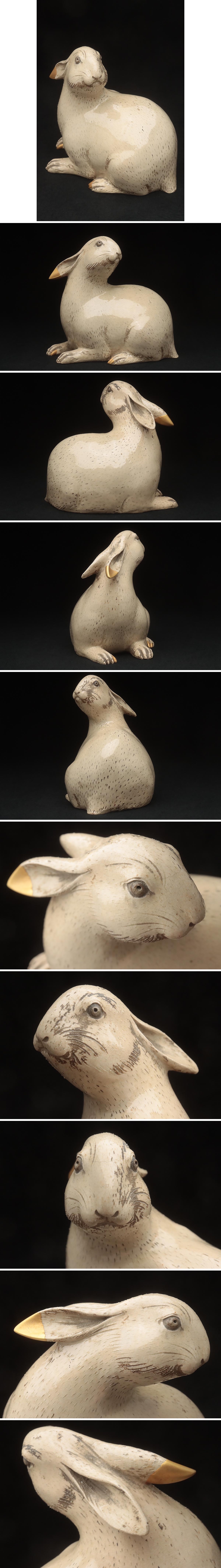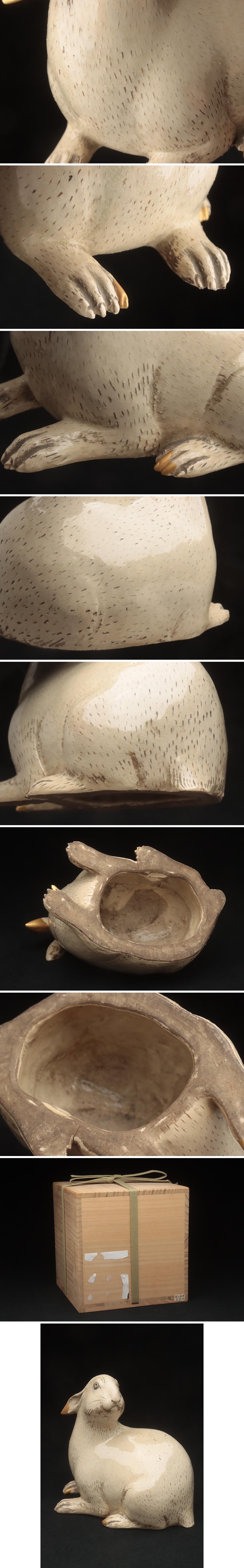 - FD261 時代古陶 献上唐津「兎」置物 高17cm 木箱附「うさぎ / ウサギ / 干支卯」床置 床飾 古美術