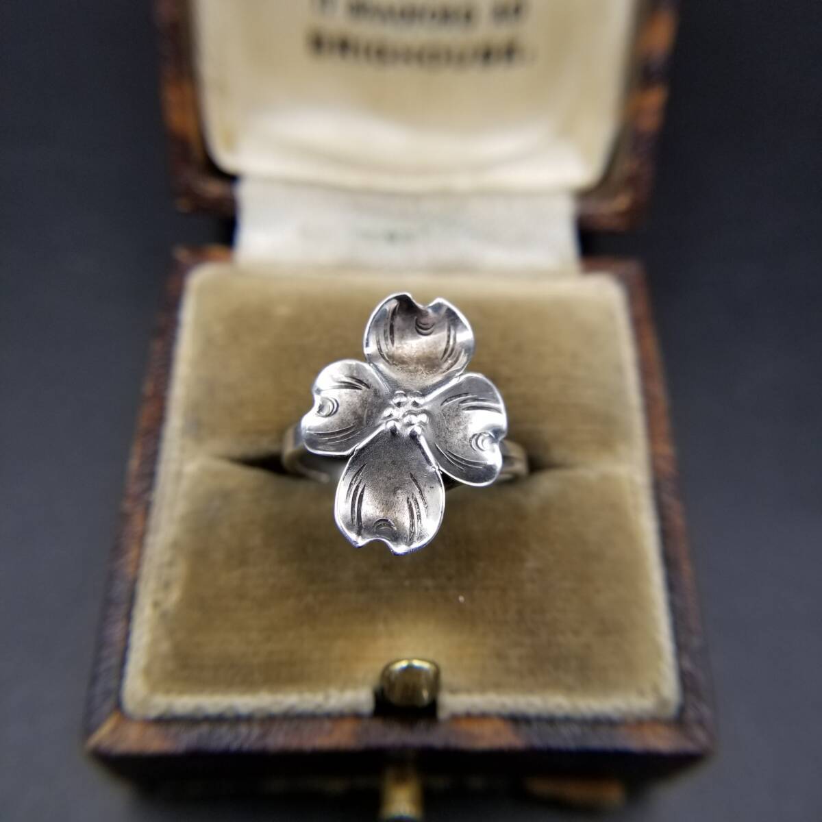 > Stewart Nye ハナミズキの花 925 シルバー ヴィンテージ フラワー リング 銀 指輪 レトロ 立体フラワー 上品 Y25-B