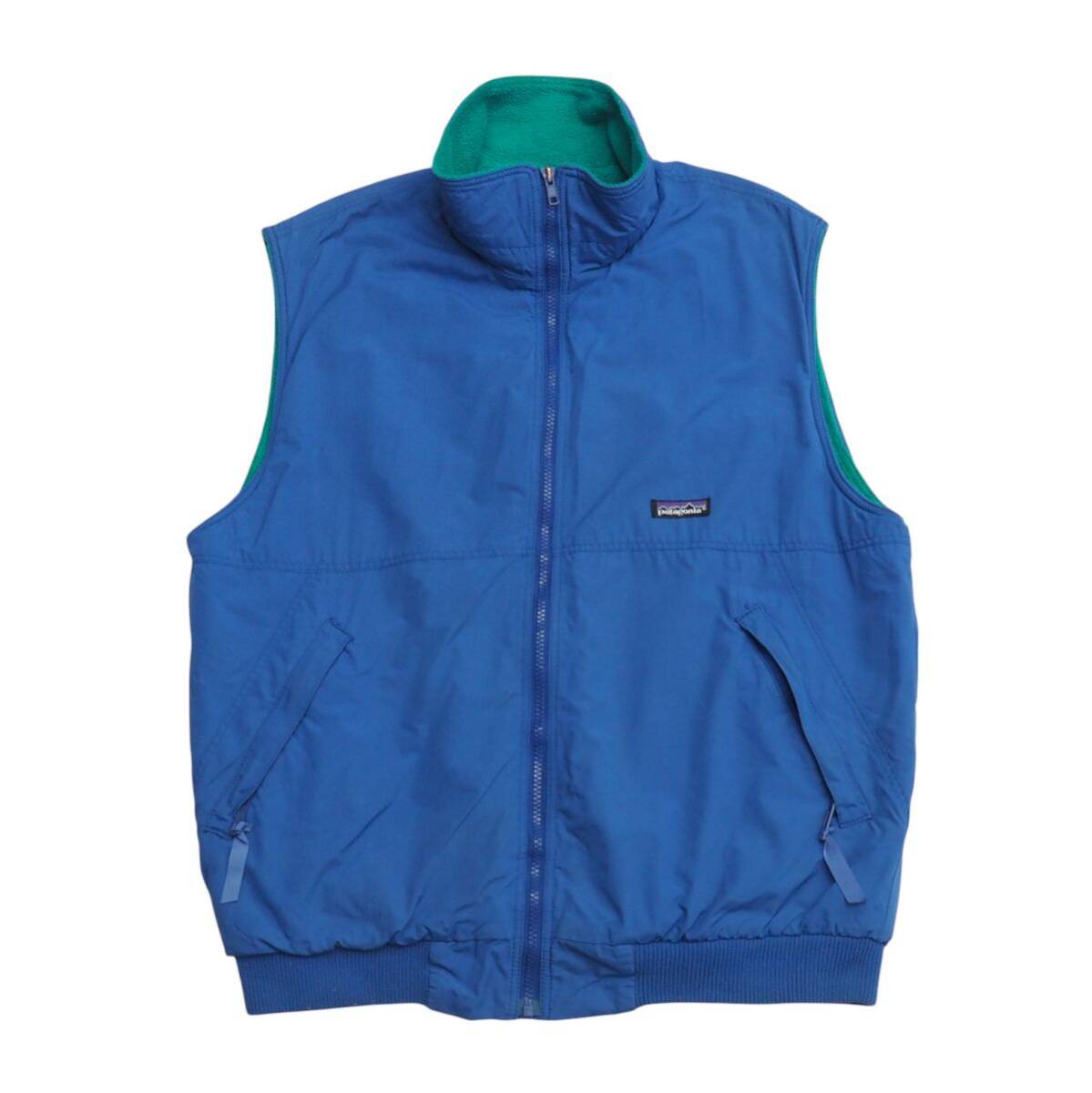 - TJ3321+モンベル製*80s*ヴィンテージ*patagonia/パタゴニア*メンズLL*ジップアップ*ナイロンベスト*裏フリース*ブルー系