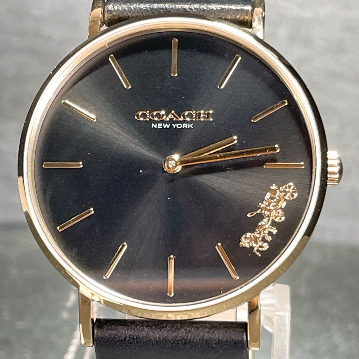 - 新品 COACH コーチ CA.120.7.34.1709 腕時計 アナログ クオーツ ブラック文字盤 レザーバンド ラウンド ゴールド ステンレススチール