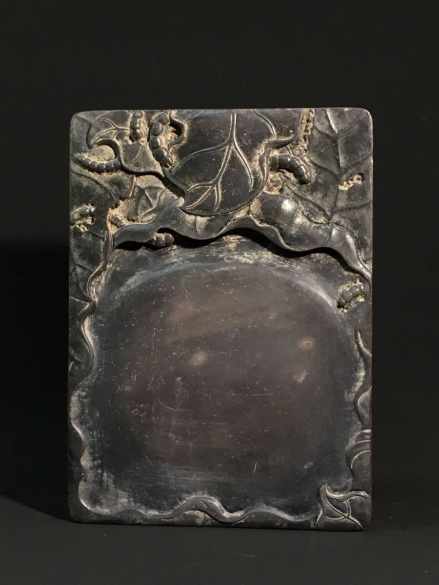 - 【永】清時代 伯元銘 端石彫 老坑 春蠶硯 極細工 書道具 文房具 置物擺件 古美術品 時代物 古董品 収集 旧家蔵出 中国唐物