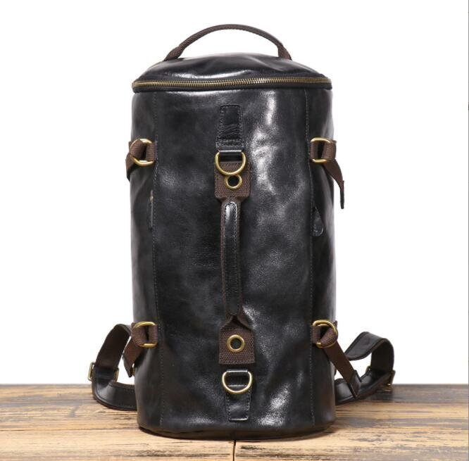 - 本革 円筒形 リュックサック メンズ レザー リュック 通勤通学 カジュアル兼用