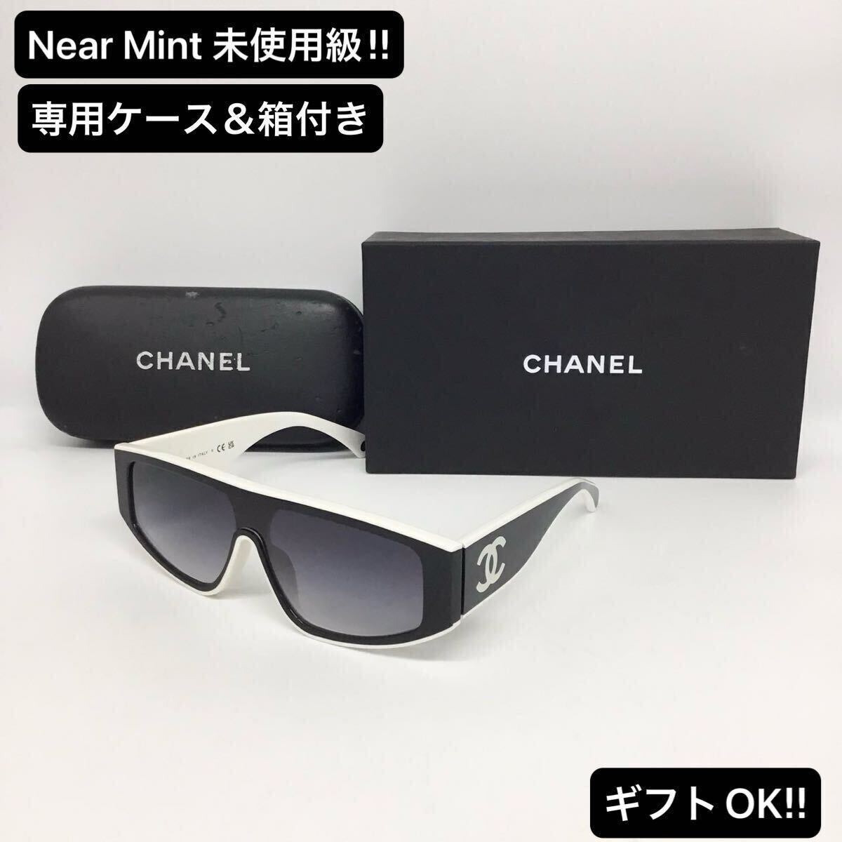 - CHANEL 未使用近い サングラス ココマーク シールドシェイプ 6057 アイウェア ブラック×ホワイト 希少 レア品 専用ケース & 箱付き