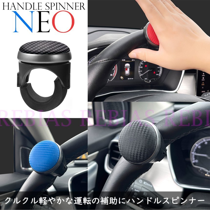 - 送料無料 【カーボン調ブルー】 ハンドル スピンナー NEO 回転 運転 補助 handle spin カスタム カーボン調
