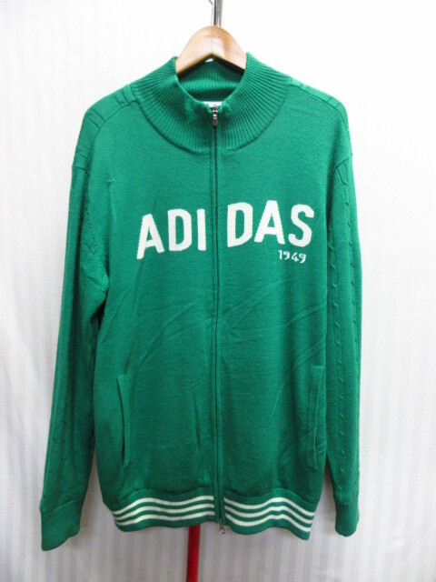 - アディダスゴルフ ケーブルニットジャケット メンズO XL LL 緑 ウールセーター 保温防寒ジャンパー ゴルフウエア 秋冬ブルゾン 10241