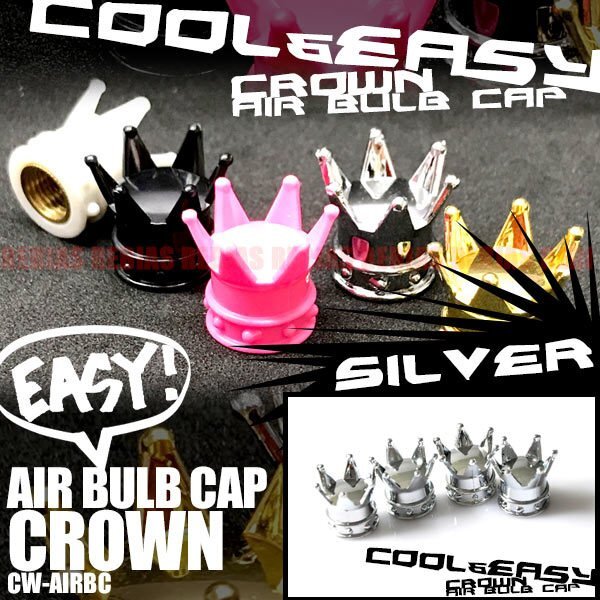 - 送料無料 ココにこだわる!! クラウン エアバルブキャップ 【シルバー】 激シブ 4個セット CROWN ドリ車 VIP 王冠 派手 簡単 汎用 バイク 車