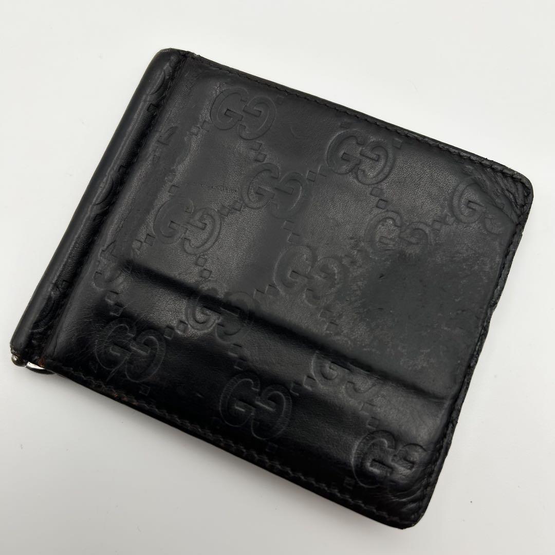 > GUCCI グッチ マネークリップ 二つ折り 財布 ウォレット wallet シマ GG柄 レザー 本革 ダークブラウン メンズ ビジネス