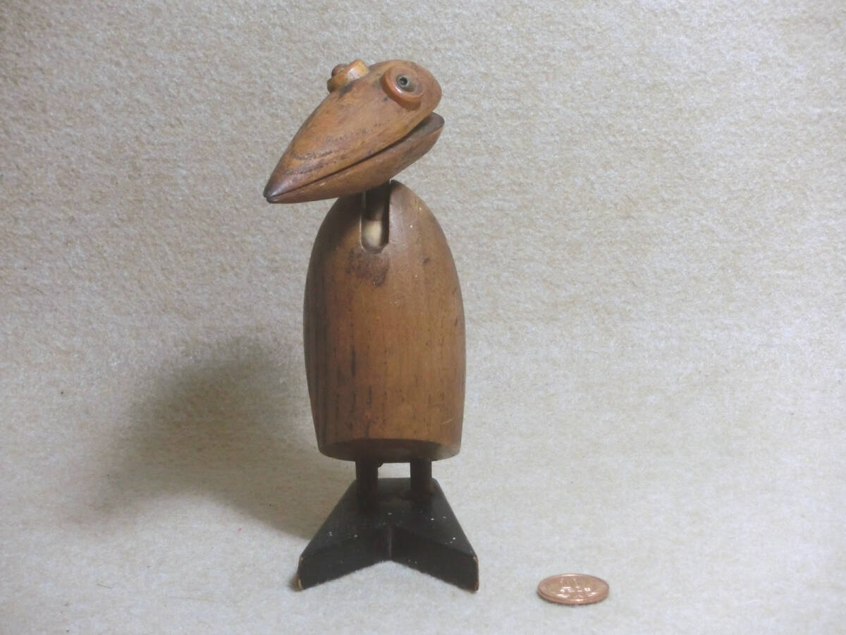 - 木製 カラスのメモクリップ置物 自在首 そこそこ古い欧米品? 送料450円~