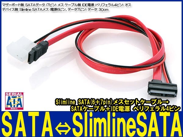 - 新品良品即決■送料無料 SlimlineSATA(6+7pin)メスセットケーブル→ sataケーブル+IDE電源 ペリフェラル4ピン スリムラインSATA DVD