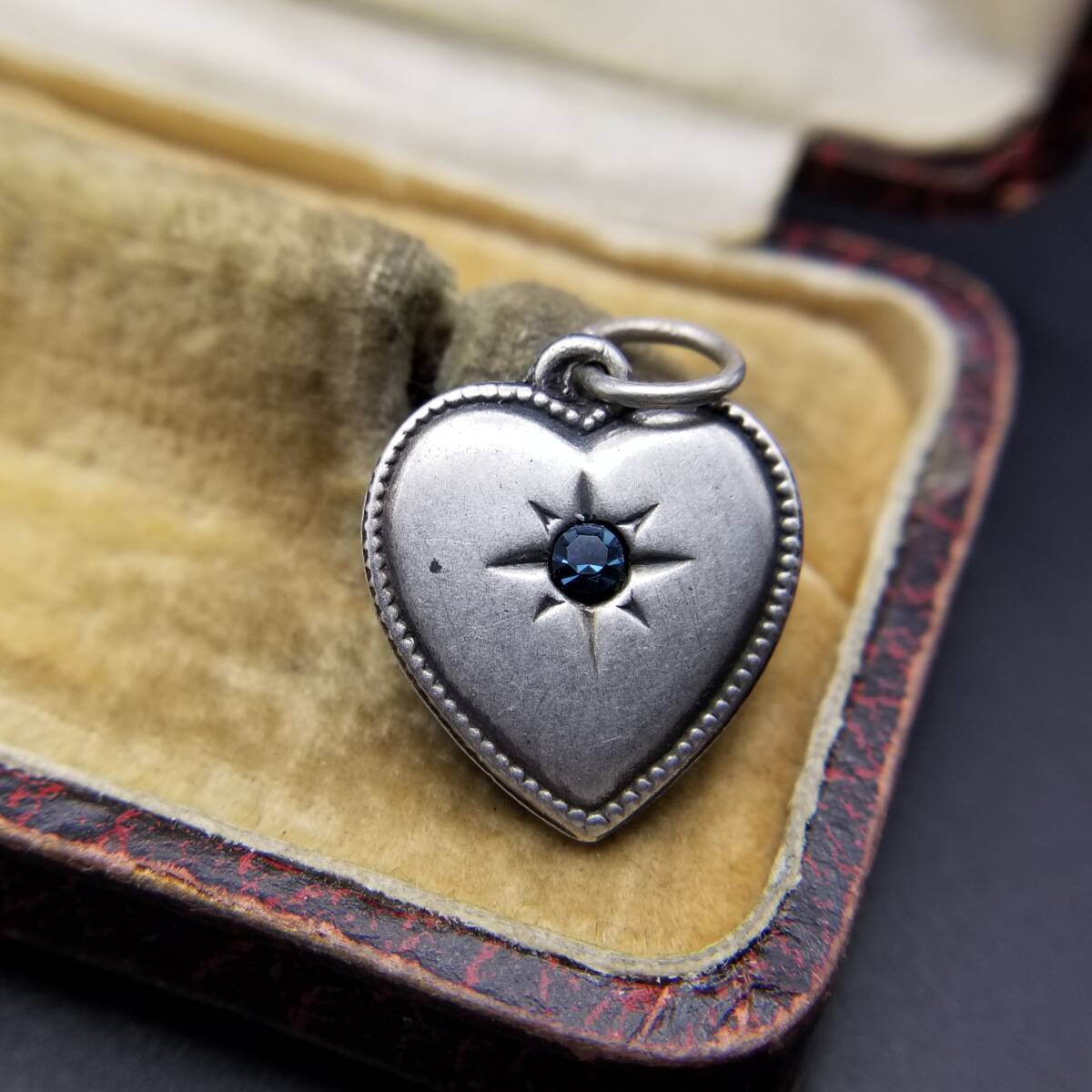 - WWII期 ヴィンテージ スウィートハートジュエリー スターカット 青石 チャーム 925 シルバー ペンダントヘッド 銀 レトロ Y25-E