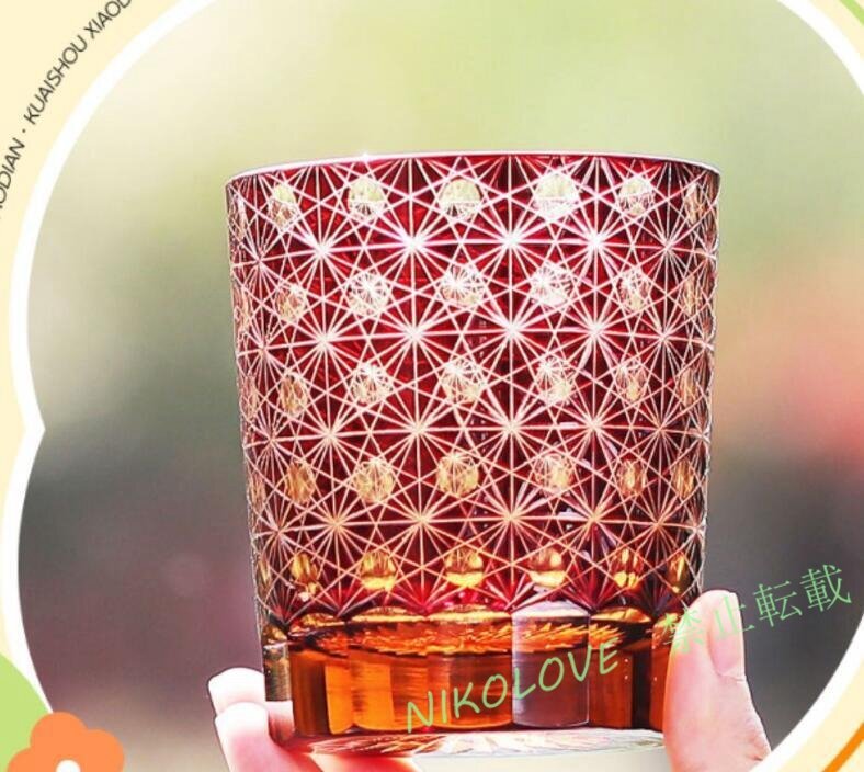 - ☆新品 高品質切子 菊繋ぎ紋 高級グラス 冷酒杯 手作りワインセット ロックグラス ビールウイスキーグラス 250ML 4色から選べます