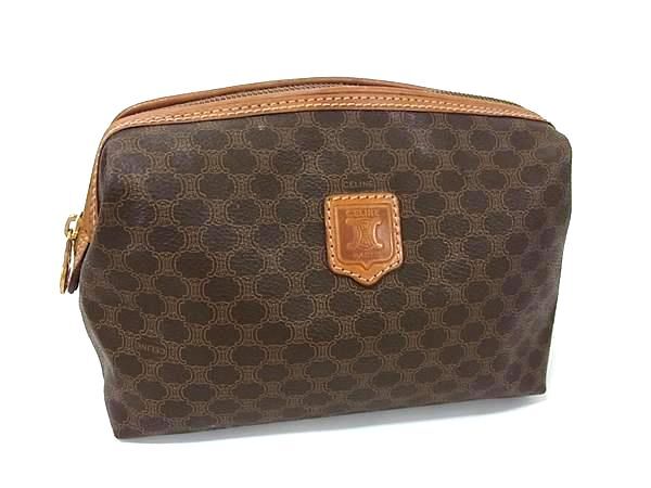 - 1円 CELINE セリーヌ ヴィンテージ マカダム柄 PVC×レザー マルチポーチ マルチケース 小物入れ ブラウン系 FP8389
