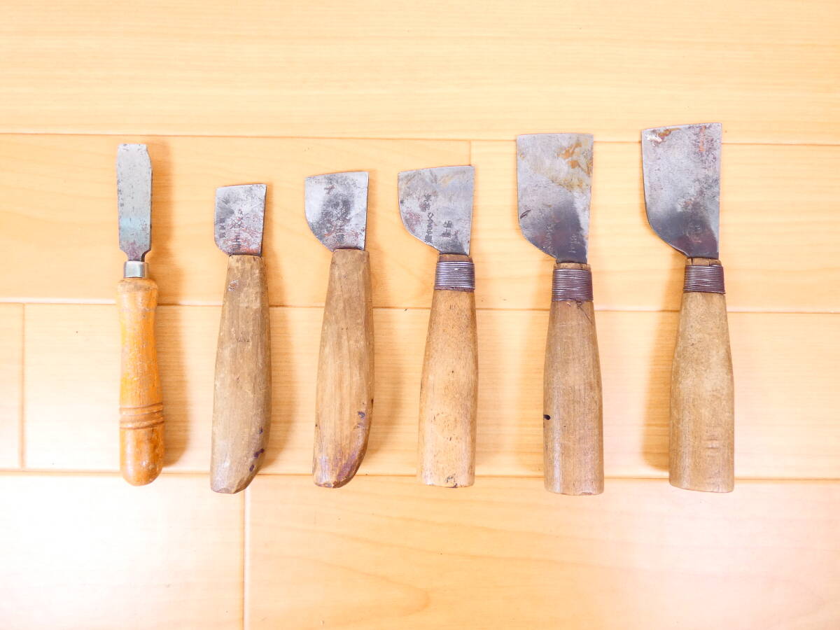 - ◇ひうちや製 王冠 など 革包丁 レザークラフト レザーナイフ 6本 まとめ 刃物 @60(10)
