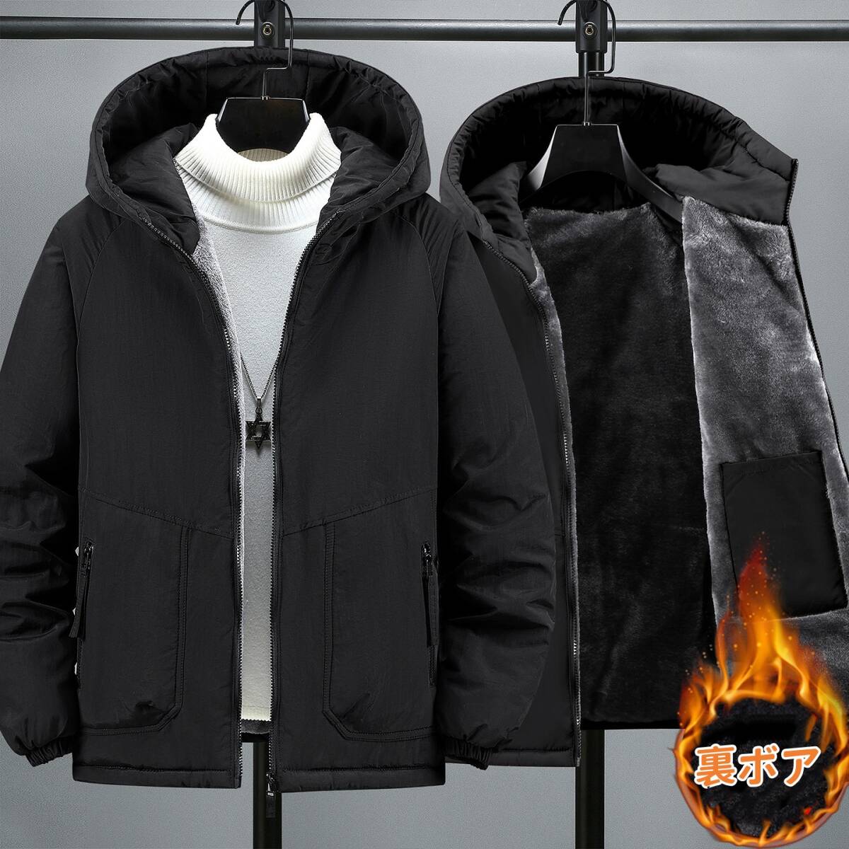 - 裏フリース ジャケット マウンテンパーカー 裏ボア 裏起毛 新品*メンズ ジャンパー ブルゾン アウター【Z621】黒 M