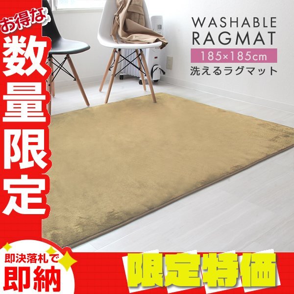 > 【限定セール】ラグ カーペット ラグマット Mサイズ 185x185cm 2畳 厚手 床暖房 低反発 絨毯 北欧 リビングマット 滑り止め ベージュ