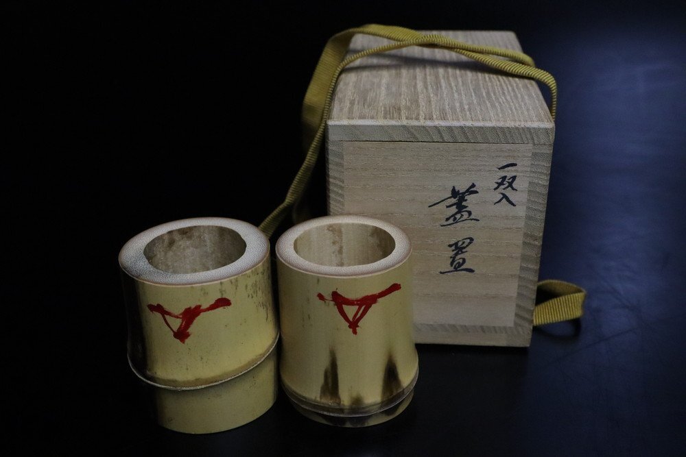 - 【江】時代 誠中斎作 竹製蓋置 一双 高さ5.3㎝ 立花大亀書付箱 古美術品(茶道具茶器竹工芸品)X1973 CTDBapqq JBnnmk