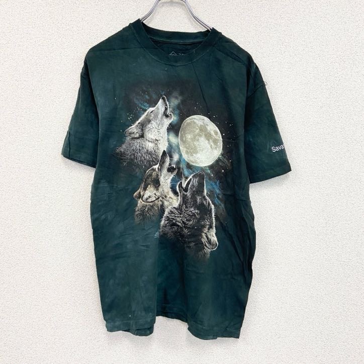 > 古着 used THE MOUNTAIN ザマウンテン 半袖プリントTシャツ アニマルT タイダイ 緑 ダークグリーン Mサイズ