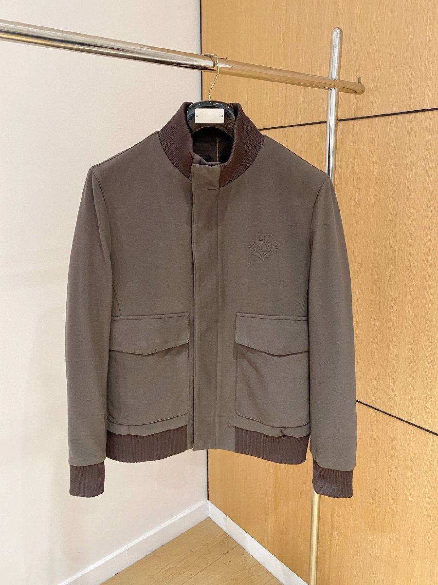 > ダークブラウンM★送料無料★ロロピアーナ Loro Pianメンズ スタンドカラー ジャケット、ビジネスカジュアル、防寒アウター、秋冬