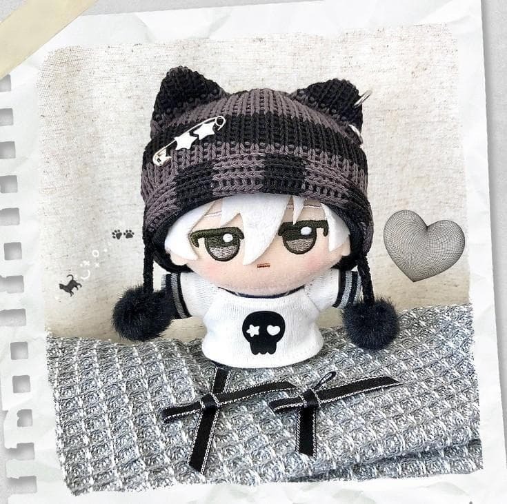 - ぬい服 ネコ耳 ニット帽 セット ブラック 黒 ぬいぐるみ服 Tシャツ 帽子