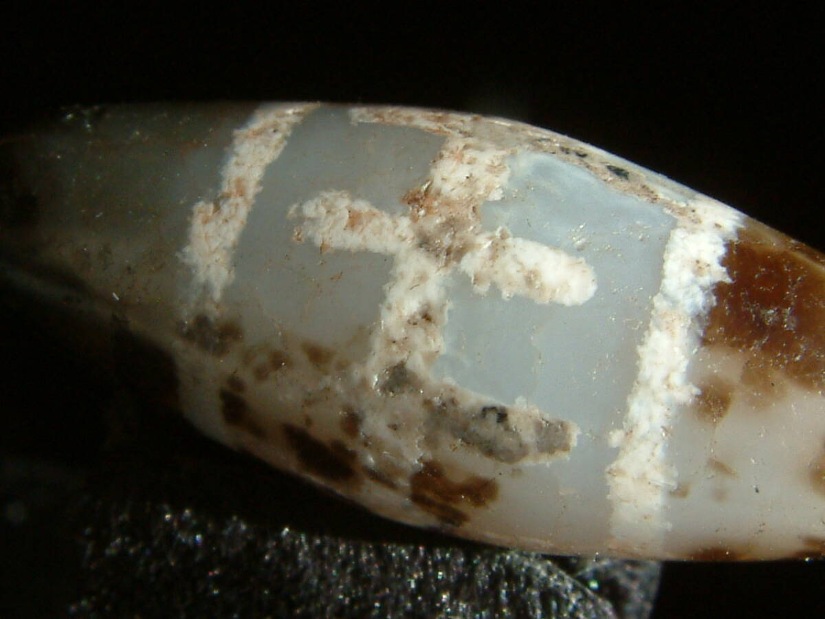 - 1065【天珠八仙】〈今は無い以前の風化型ジービーズ〉..古代図案天珠..約2.6㌢