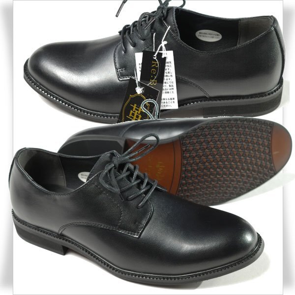 - 新品1円~★Re:Bornn リボーン メンズ アクションレザービジネスシューズ 26.5cm ブラック 黒 レースアップ プレーン 本物 ◆7570◆