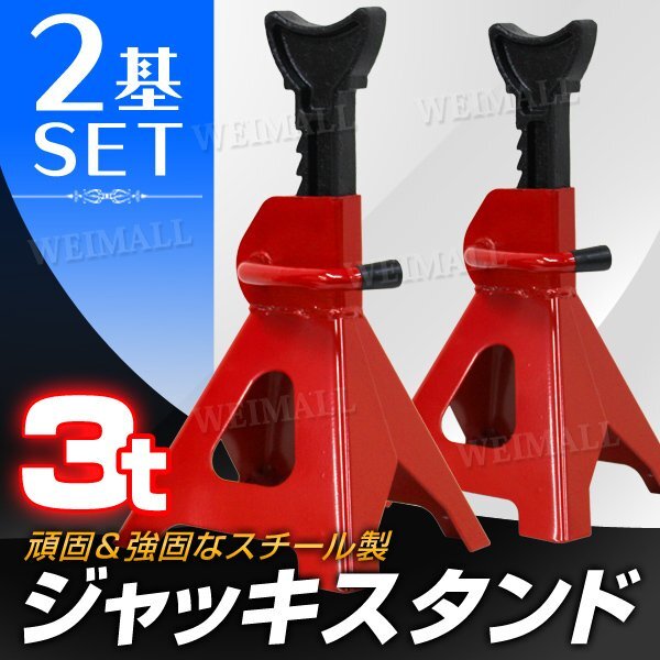 > 【2基セット】新品未使用 ジャッキスタンド 耐荷重3t リジットラック ラチェット式 馬ジャッキ スタンド ジャッキアップ 自動車 メンテ DIY