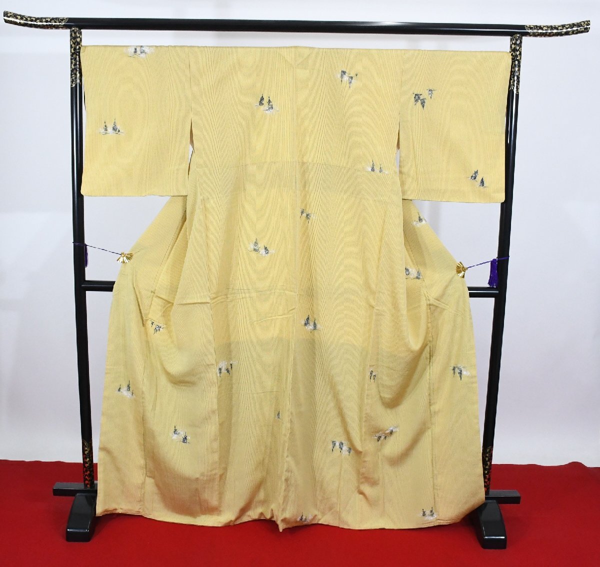> 紬 着物 袷 縞々 北大路魯山人 たけのこ 竹の子 落款 身丈159cm 裄丈68cm ★ kb-7548 桜庭呉服店