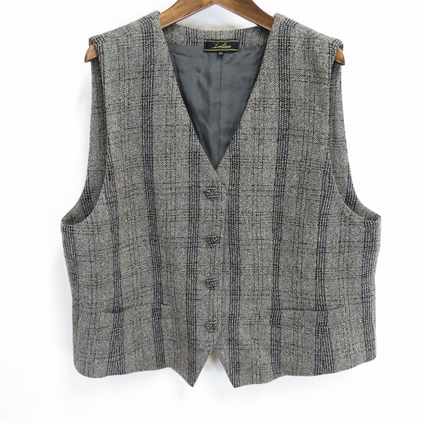 - #w レリアン Leilian ベスト ジレ 15+ 黒 グレー ベージュ チェック 大きいサイズ レディース [944775] k01