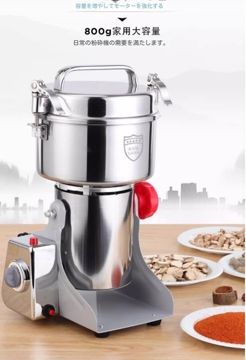 - 家庭用 業務用 電動製粉機 ハイスピードミル コンパクト 粉砕機 800g 小型 電動ミルスパイス 穀物粉砕機 米粉 小麦 生薬 スパイス粉