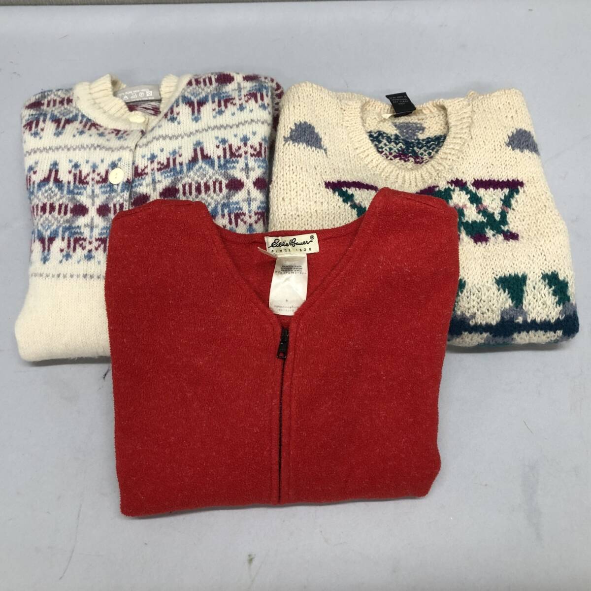 - △ ヴィンテージ ニット 3点 まとめ エディーバウアー ノルディック柄 総柄 カーディガン ノーカラージャケット サイズMIX 卸 1.31kg