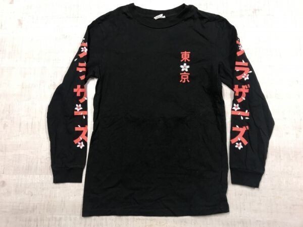 > ABSENT ストリート 日本語 東京市 長崎 京都 ブラザーズ 鶴 和柄 桜 袖プリント 刺繍 スーベニア 長袖Tシャツ ロンT メンズ XS 黒