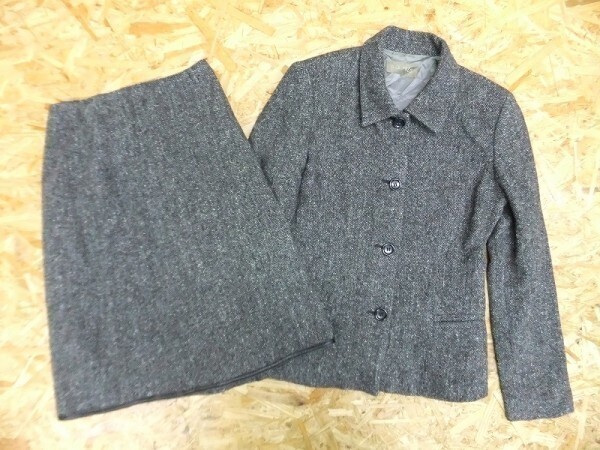 > DES PRES デプレ レディース 日本製 ウール ナイロン シルク混 ヘリンボーン ツイード ジャケット スカートスーツ セットアップ グレー 0