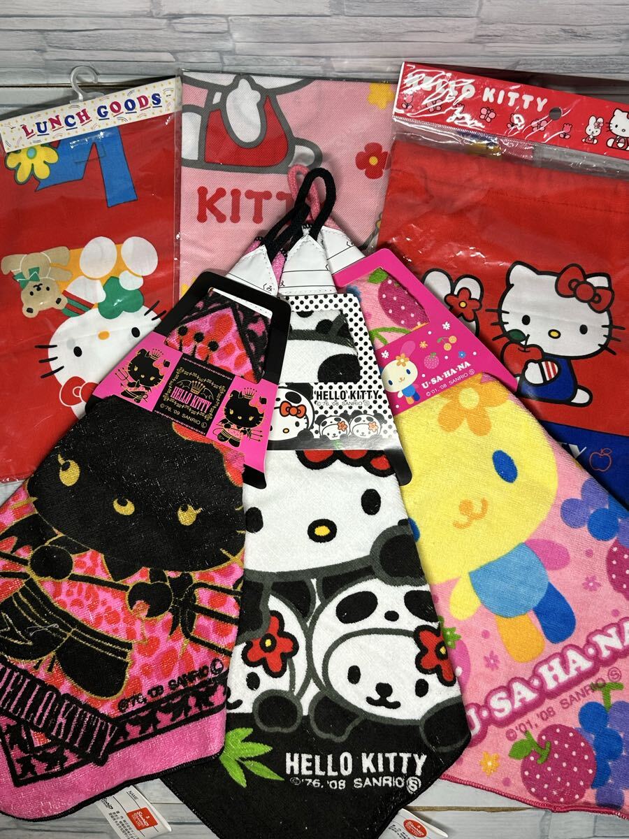 > サンリオ キティ ウサハナ デビルキティ 小悪魔 パンダ フープ付き ハンドタオル ランチクロス 巾着 リンゴ 平成 レトロ 1997 2001 2008
