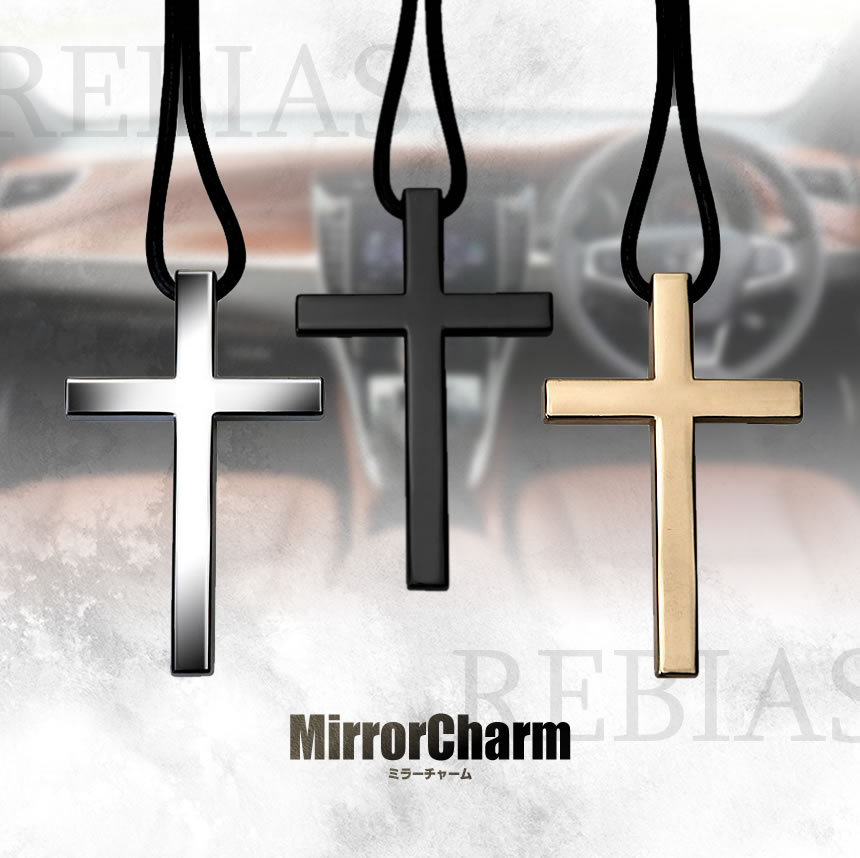 - 送料無料 ミラーチャーム 十字架 【ブラック】 ルームミラー 吊り下げ クロス カーアクセサリー 内装 飾り 車 お守り