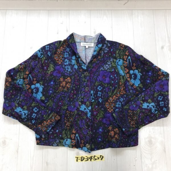 - CACHAREL キャシャレル レディース 花柄 ボタン クロップド カーディガン 紫
