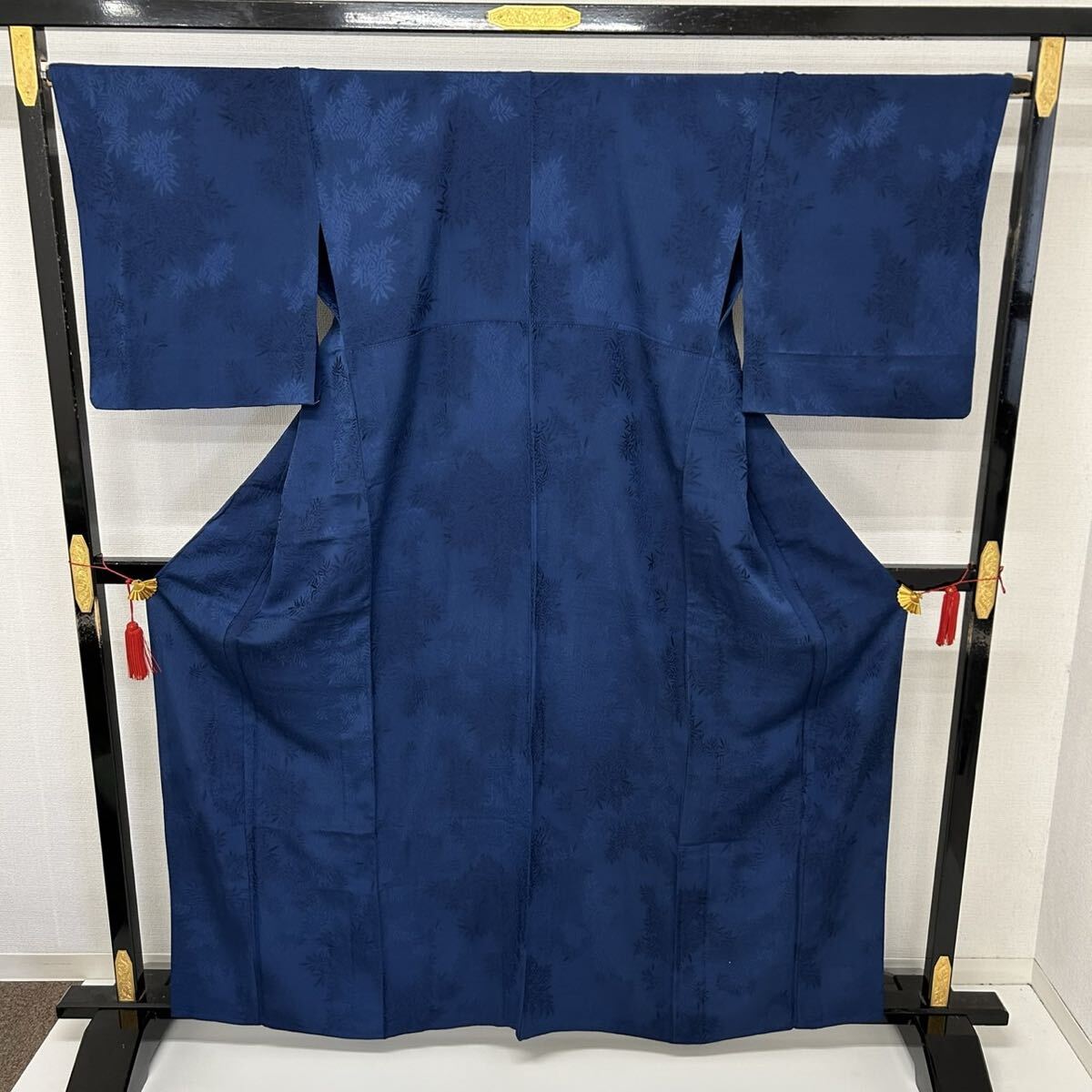 - 小紋 藍染 裄67 単衣仕立て 居敷当て ガード加工 正絹 着物 F-687