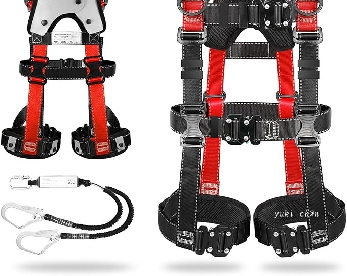 - フルハーネス 反射 レッド 新規格 セット フルハーネス安全帯 安全保護 ワンタッチ 脱着簡単 安全帯 ランヤード付き 2丁掛け 肩パッド
