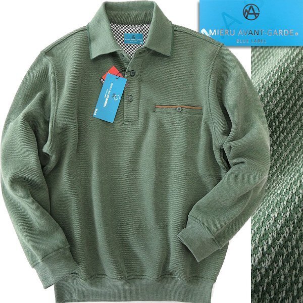 > 新品 ミエル 裏暖 フリース ジャージー 長袖 ポロシャツ LL 【TO22-1081_グリーン_LL】 MIERU AVANT-GARDE 秋冬 メンズ ニット 裏起毛 緑