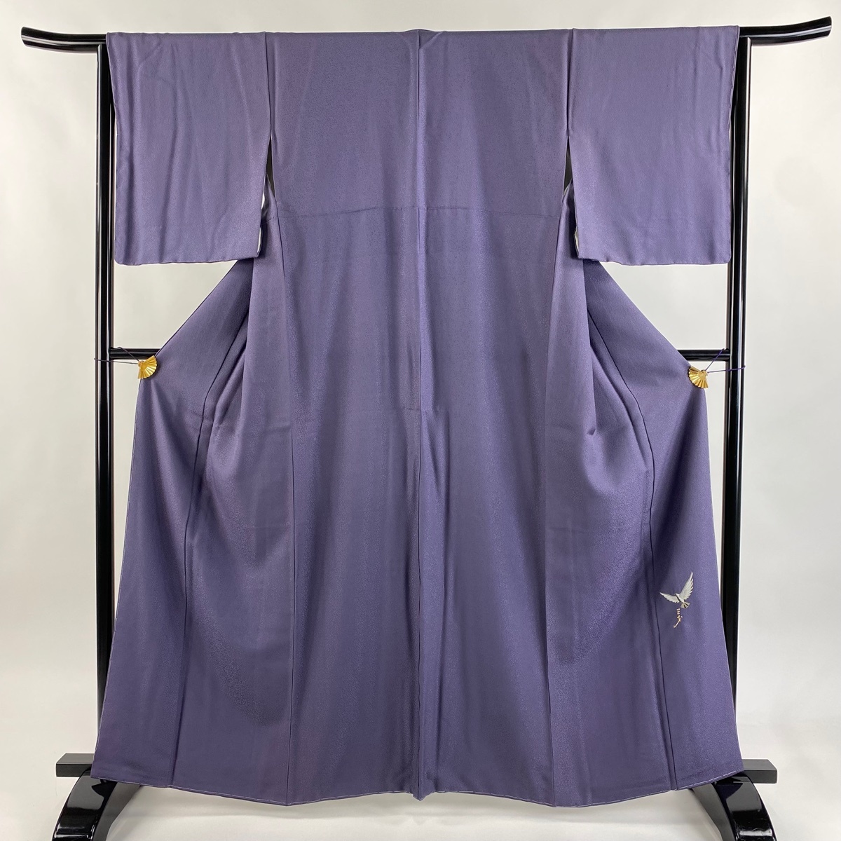 - 色無地 身丈162cm 裄丈65cm M 袷 斉藤三才 落款 証紙 地紋 紫 正絹 秀品 【中古】