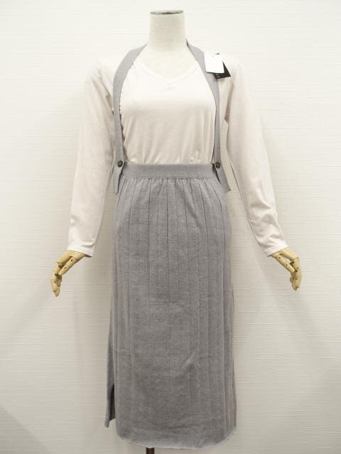 > 美品 EXOCET等 長袖カットソー+ロング丈ニット肩紐付タイトスカート コーデ2点セット M相当 アイボリー ラメ入り/グレー クール 30代~40代