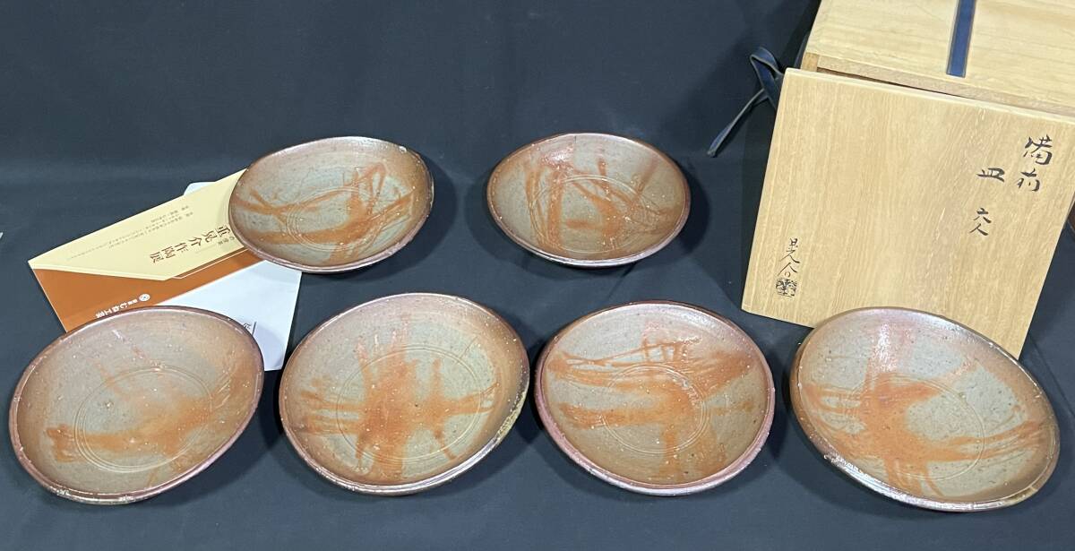> 金重晃介 備前焼 皿 六枚 火襷 共箱 懐石 和食器 茶道具 個展出品作 岡山県指定重要無形文化財 金重陶陽三男