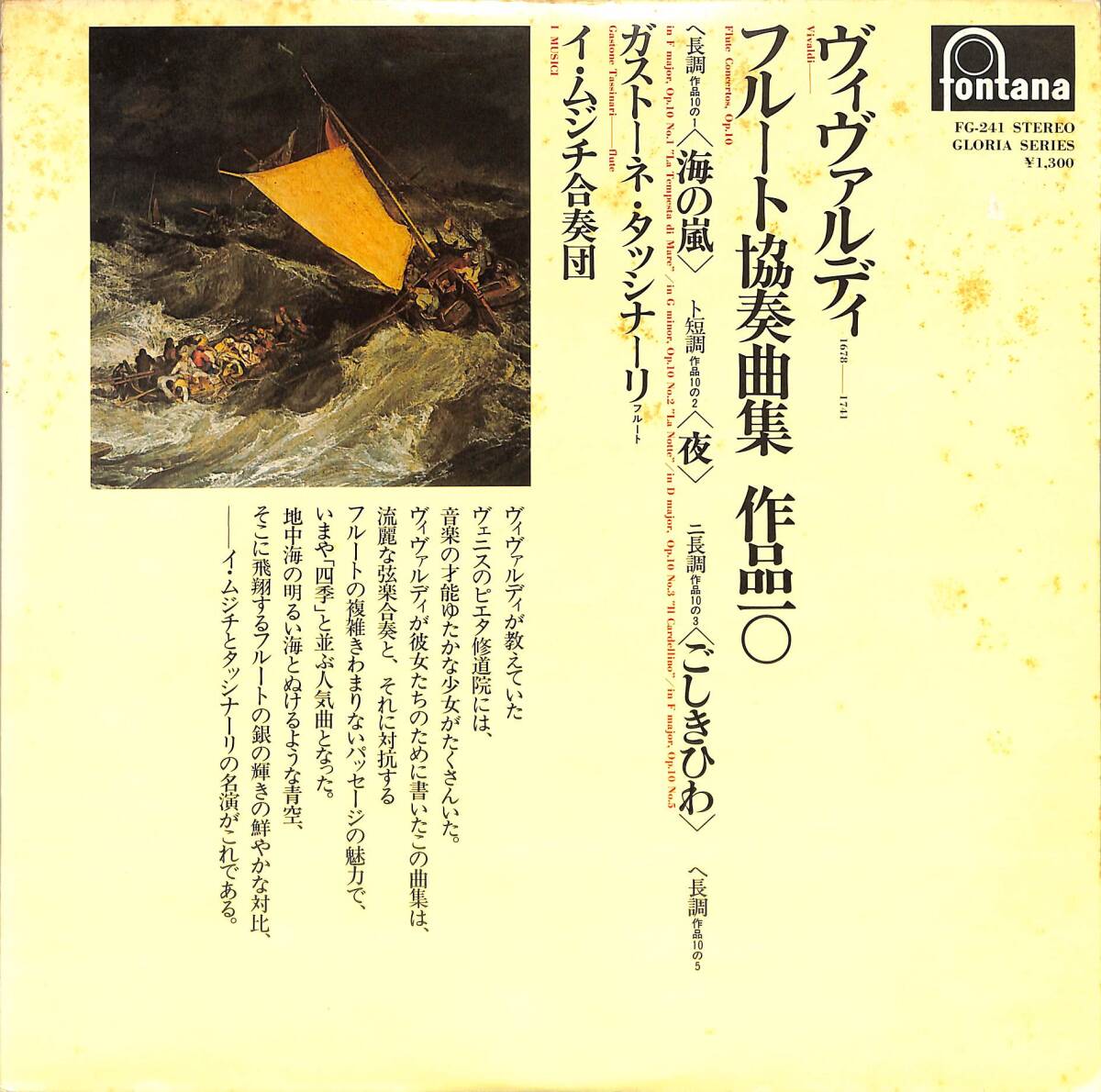A00525304/LP/ガストーネ・タッシナーリ「ヴィヴァルディ/フルート協奏曲集作品10」拍卖