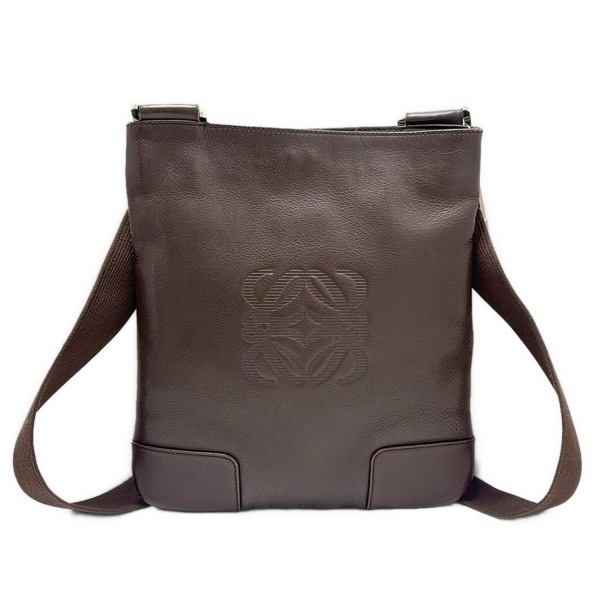 - ロエベ LOEWE ショルダーバッグ - レザー ダークブラウン 型押し加工 美品 バッグ