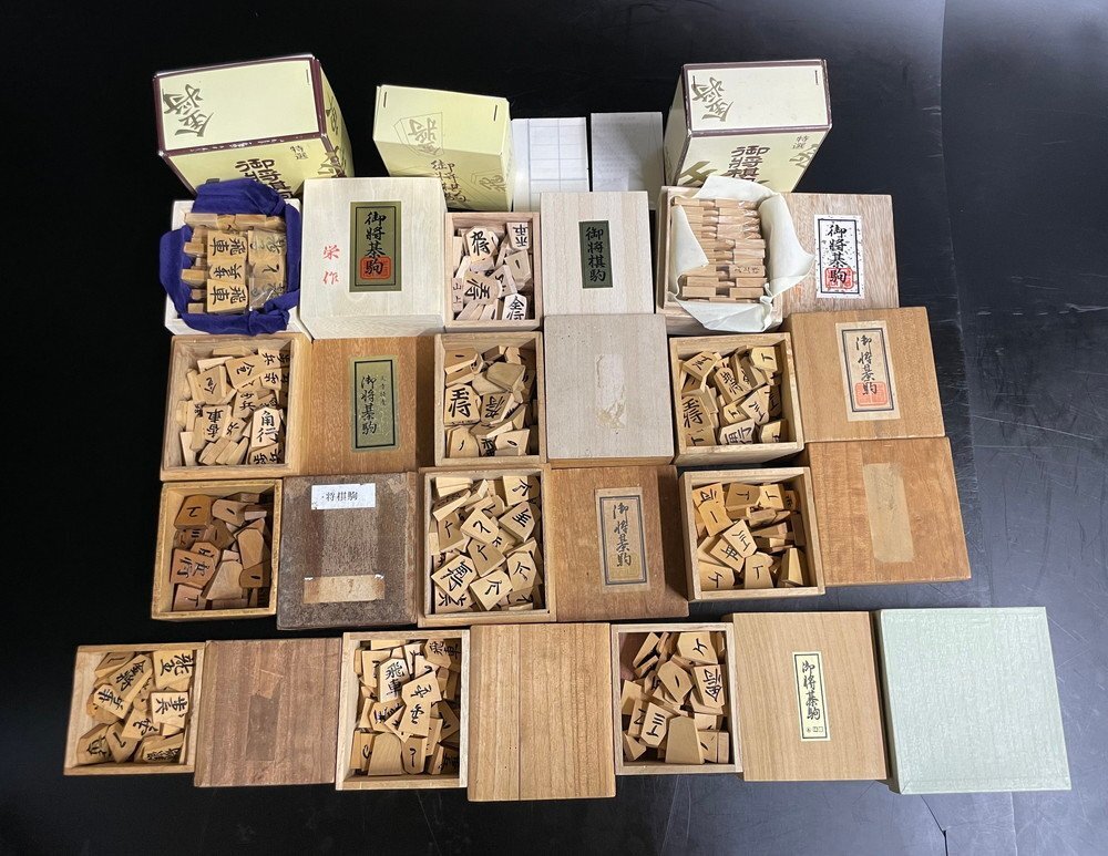 - 【1AP3660】名工造 将棋駒 大量まとめ 天上作 錦旗天元作 栄作 本黄楊上彫 黄楊黒彫 他 工芸品 古美術品 骨董 趣味 コレクション 現状品