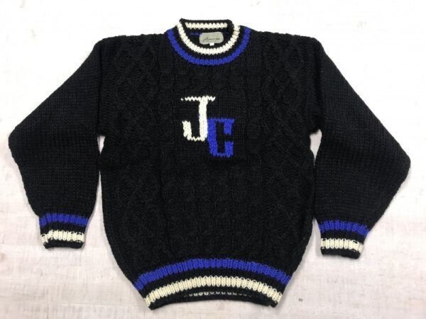 > WHAT'S NEWオールド トラッド 90s 韓国製 古着 ケーブル編み ジャガード レタード ローゲージ ニット セーター メンズ F 黒