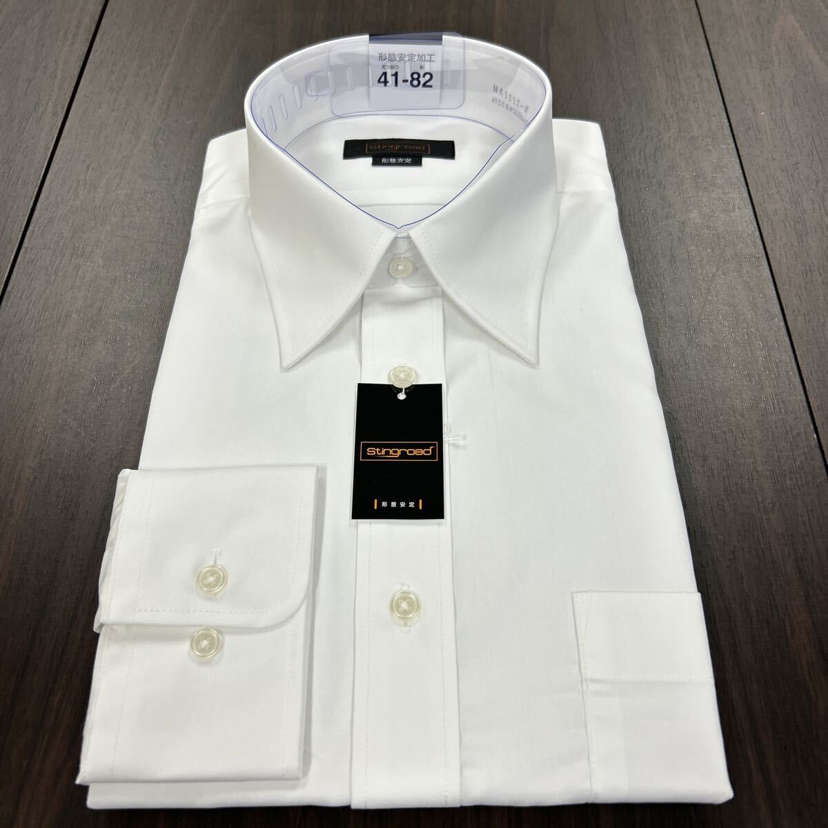 - 綿高率白無地形態安定ドレスシャツ41-82レギュラーカラー